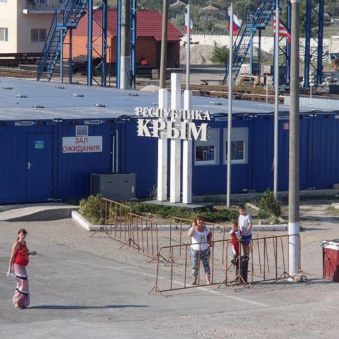 Тут я обнаружил, что на переправе через Керченский пролив наконец то наведен порядок. Электронный билет купленный заранее на gosparom.ru и распечатанный экономит около часа времени. На накопительной площадке перед посёлком Ильич стоят в очереди неудачники, чтобы купить билет на паром, а грамотные люди предъявляют распечатку электронного билета и получив посадочный талон сразу едут в Порт Кавказ на посадку. В Порту Кавказ очередь перед накопительной площадкой в 13:35 была всего метров 200. Общее время ожидания до погрузки на паром составило 1 час 20 минут, а общее время от прибытия в Порт Кавказ до выгрузки в Порту Крым составило 2 часа 30 минут.